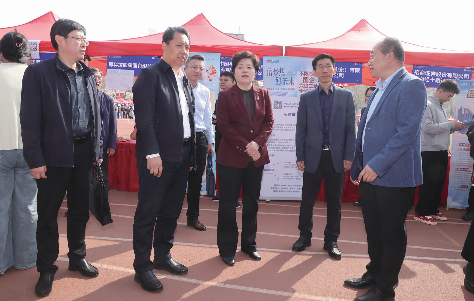 本报讯 为深化校地协同就业服务,助力毕业生高质量就业创业,3月27日,“选择济南 共赢未来”2026年驻济高校毕业生就业双选会在我校隆重举办。学校党委书记刘春华,党委常委、副校长李强,济南市人力资源和社会保障局党组成员、市公共就业服务中心主任王振群,市委机要保密局副局长、市委保密办主任、市国家保密局局长王艇等相关部门负责人亲临双选会现场指导工作,深入调研用人单位招聘需求及毕业生求职等情况。